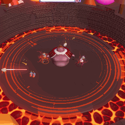 In order to entertain the king, you must kick the intercontinental ballistic chicken into your friends and push them into the lava pit. The player has to kick the chicken into their friends while avoiding to get hit themselves.